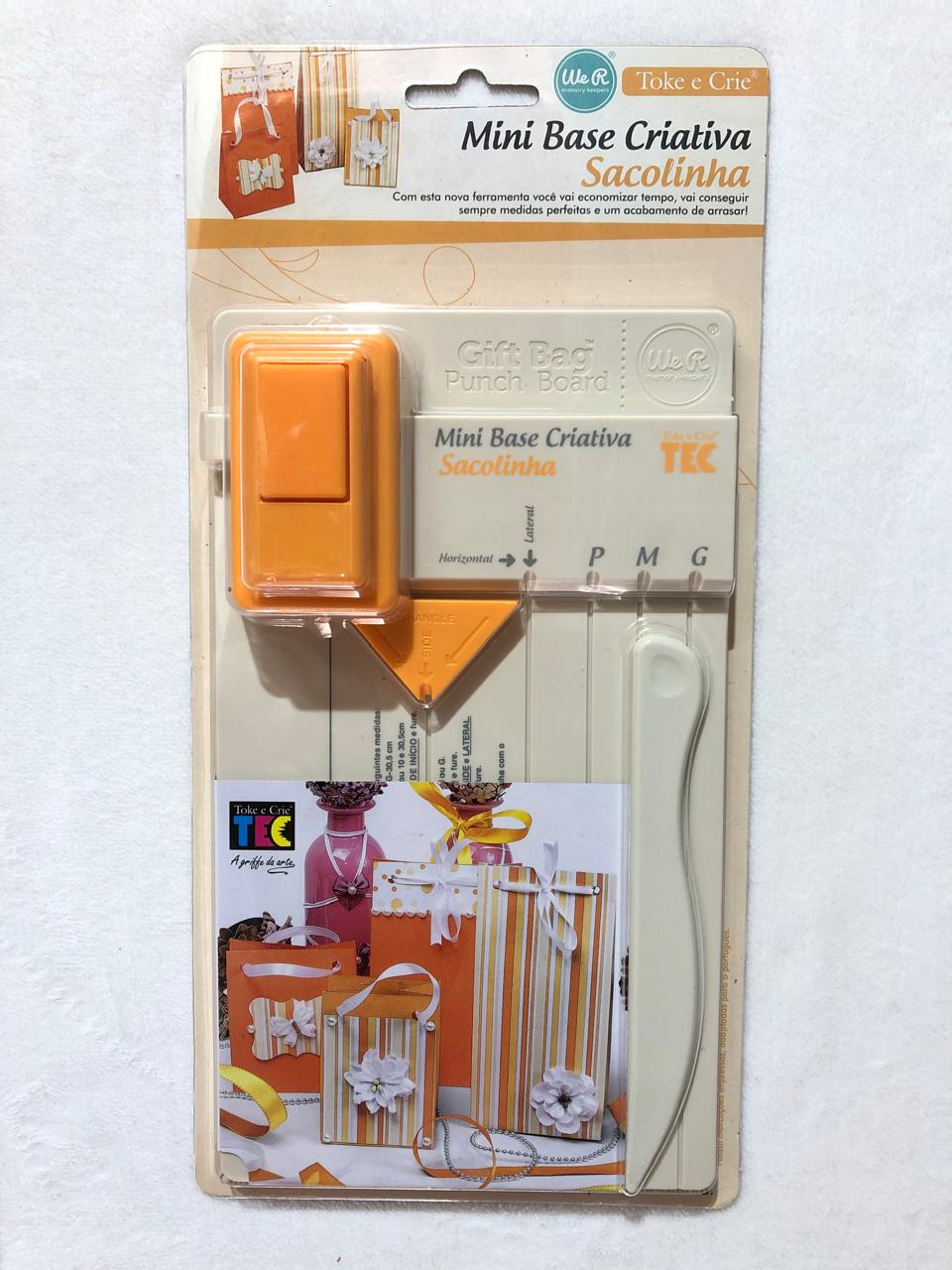 Mini base ideal para criação de sacolinhas para decoração de festas e embalagens personalizadas. Crie sacolinhas de tamanhos P, M e G. A mini base possui furador e espátula vincadora.