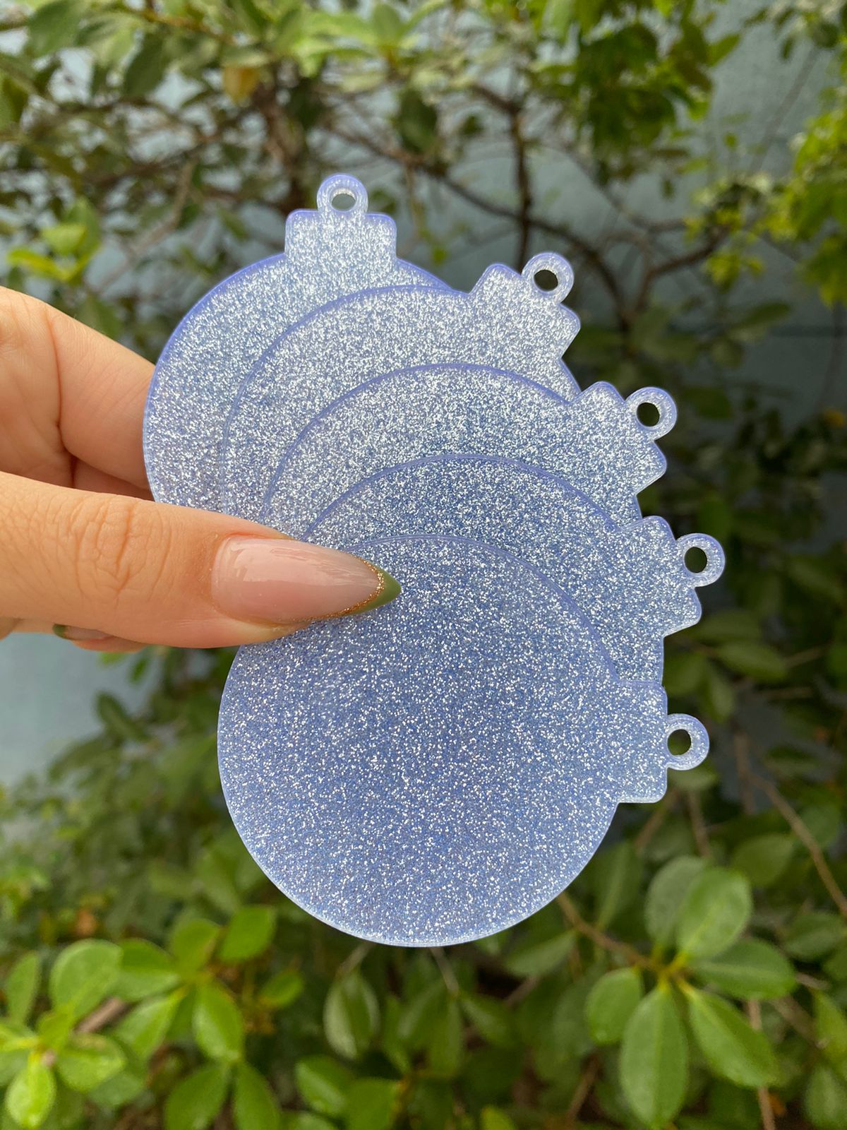 Pingente Acrílico Bola Natalina Para Pendurar – Cor Prata Glitter – 6cm – Pacote com 5 unidades