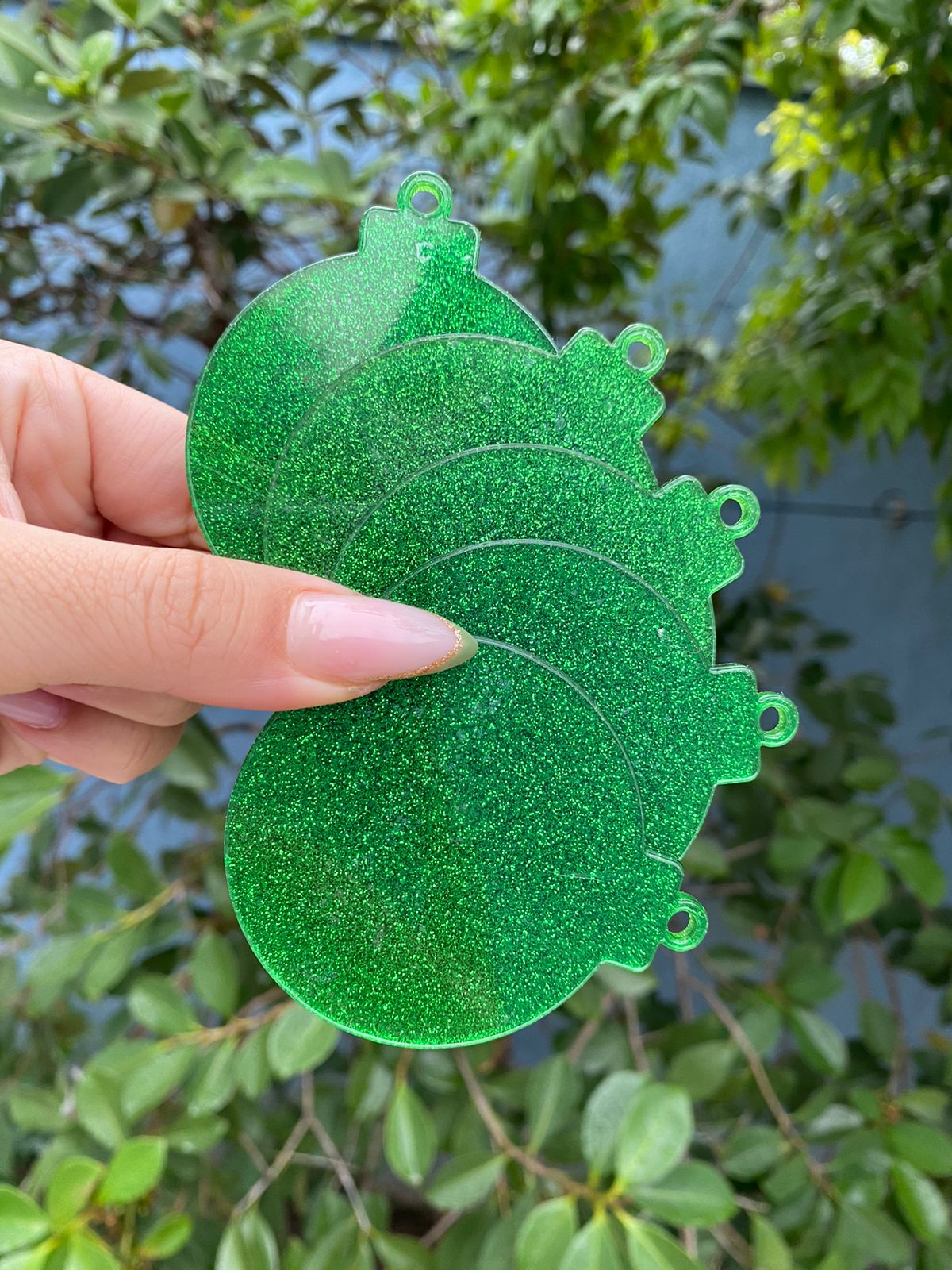 Pingente Acrílico Bola Natalina Para Pendurar – Cor Verde Glitter – 6cm – Pacote com 5 unidades