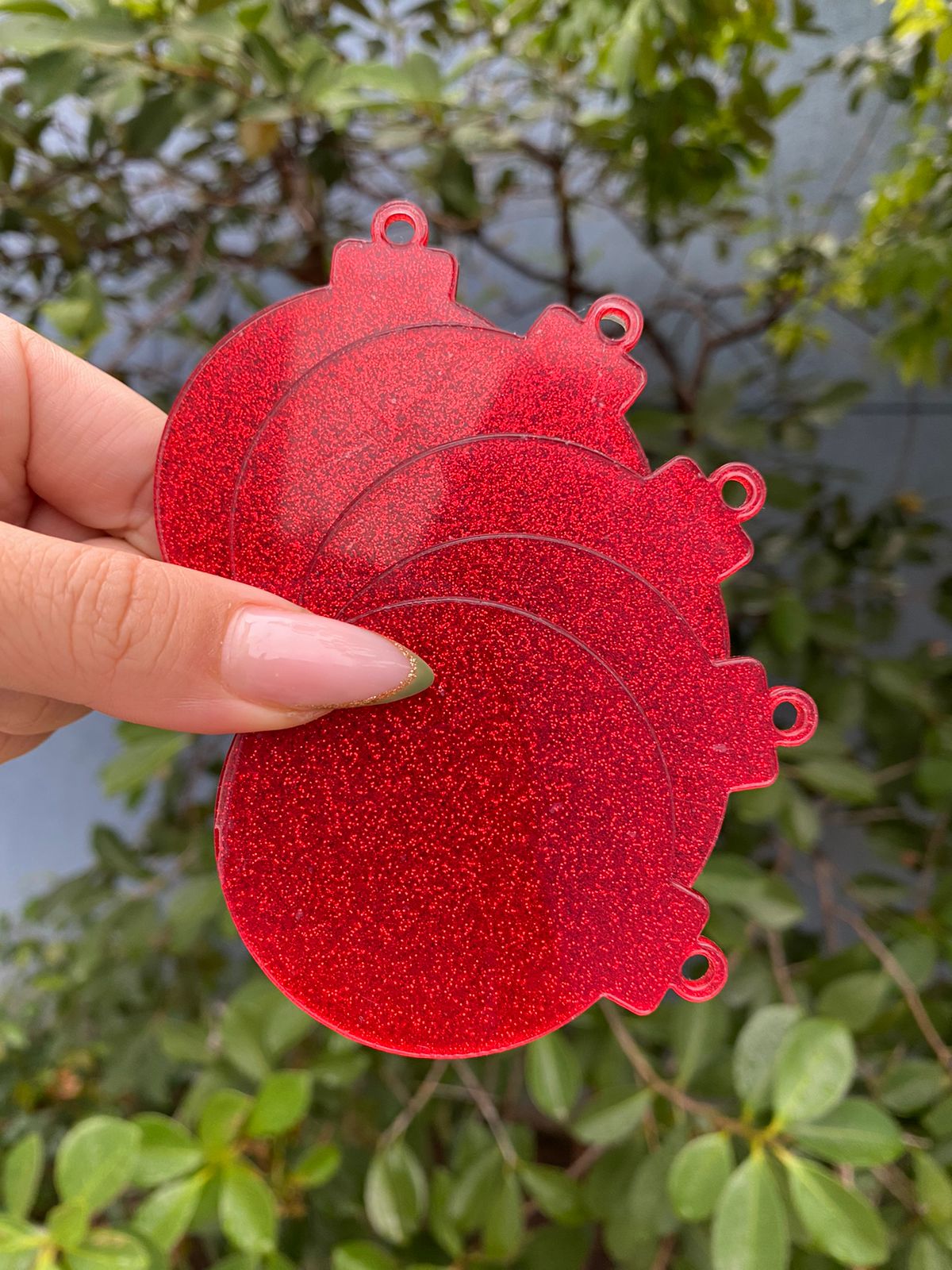 Pingente Acrílico Bola Natalina Para Pendurar – Cor Vermelho Glitter – 6cm – Pacote com 5 unidades